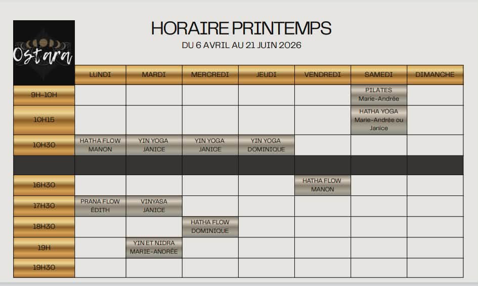 Cliquez ici pour consulter la grille horaire de tous nos cours.